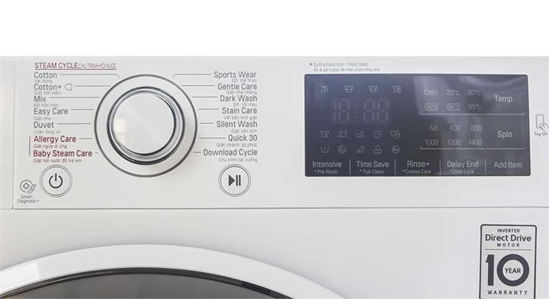 Máy giặt LG 8kg FM1408N6W với núm xoay chức kết hợp các phím nhấn trên màn điều khiển sẽ cho bạn chương trình giặt như mong muốn.