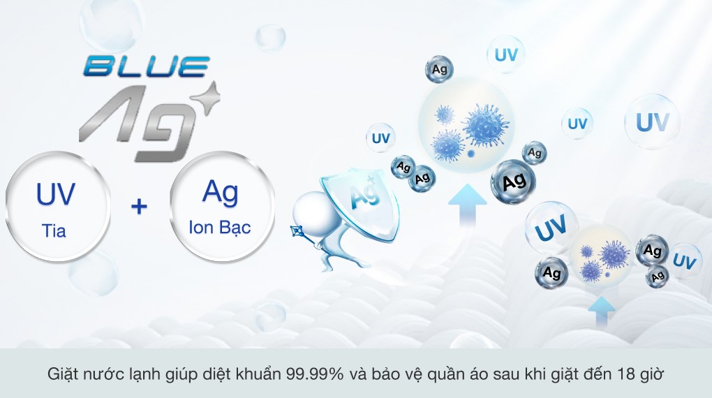 – Công nghệ giặt nước lạnh Blue Ag+ trên máy giặt Panasonic đã được JFRL công nhận về khả năng diệt khuẩn đến 99%. Đồng thời quần áo sau khi giặt được kháng khuẩn đến 18 giờ.