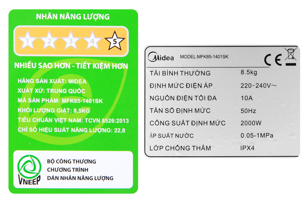 Khối lượng giặt của chiếc máy giặt Midea này là 8.5 kg, giúp giặt giũ được một khối lượng lớn đồ giặt trong ngày, rất phù hợp cho những gia đình từ 4 – 5 thành viên