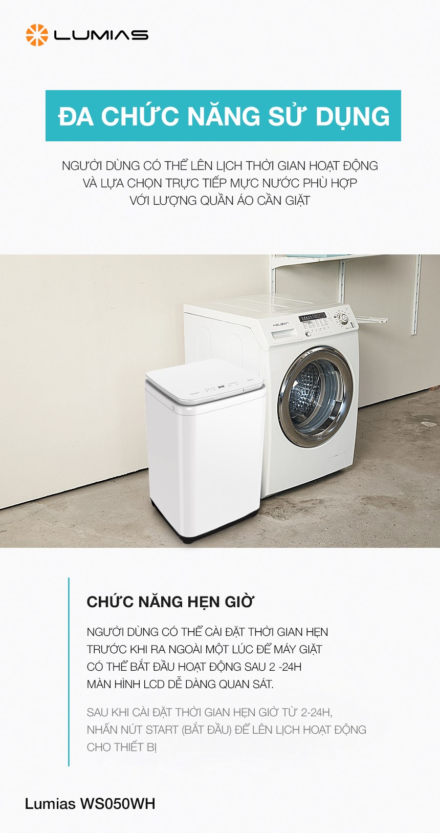 Máy giặt Lumias WS050WH đa chức năng sử dụng, hẹn giờ thông minh, tiện lợi