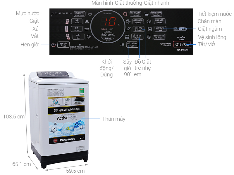 Máy giặt Panasonic 10 kg NA-F100A4GRV sở hữu thiết kế đơn giản, phù hợp để kết hợp với mọi không gian nội thất. Đi cùng khối lượng giặt 10 kg, máy giặt là sự lựa chọn lý tưởng cho gia đình 6 người trở lên.Bên cạnh đó, bảng điều khiển được đặt ở phía sau có hỗ trợ tiếng Việt giúp bạn dễ dàng hơn trong việc thao tác, sử dụng máy cũng như làm vệ sinh.
