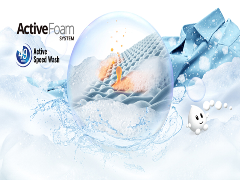 Hệ thống ActiveFoam đánh tan bột giặt tạo bọt mịn đậm đặc ngay khi bước vào quá trình giặt, lượng bọt bột giặt được tạo ra đổ trực tiếp vào bề mặt quần áo, thấm sâu vào từng sợi vải đánh bay mọi vết bẩn cứng đầu đem lại cho bạn những bộ quần áo sạch tinh khôi.