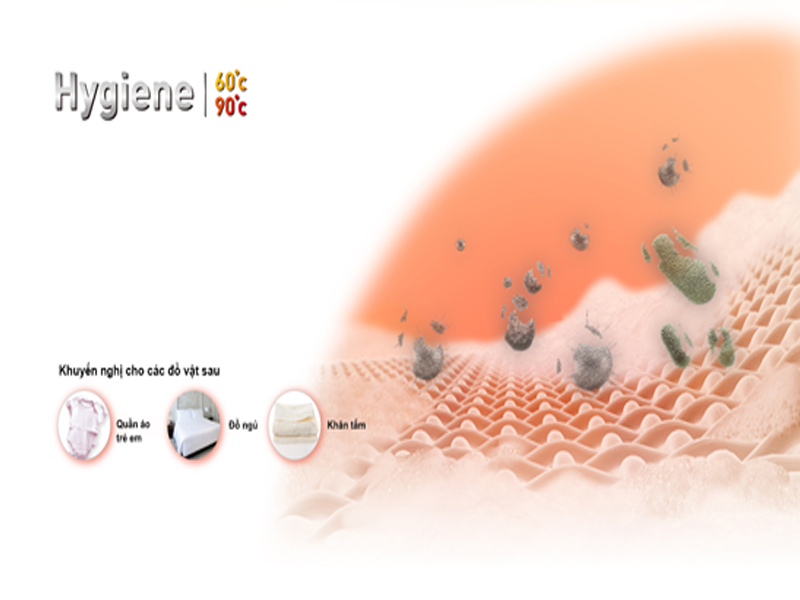 Với tính năng này quần áo được giặt với nước nóng cho khả năng đánh bay các vết bẩn cứng đầu như vết dầu mỡ, vết bùn hay vết bẩn ở cổ áo, đặc biệt với chế độ Hygiene nhiệt độ nước có thể lên đến 60oC/90oC cho khả năng đánh bật các loại vi khuẩn, vi sinh vật, chất gây dị ứng da lên đến 99.99%, giặt sạch và bảo vệ quần áo hiệu quả.