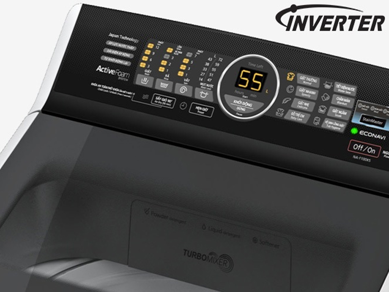 Máy giặt được trang bị động cơ Inverter vừa mạnh mẽ vừa cho hiệu suất tiết kiệm điện hiệu quả.
