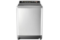 Chiếc máy giặt Panasonic nổi bật với kiểu dáng sang trọng, hiện đại và vuông vắn phù hợp với mọi không gian nội thất.