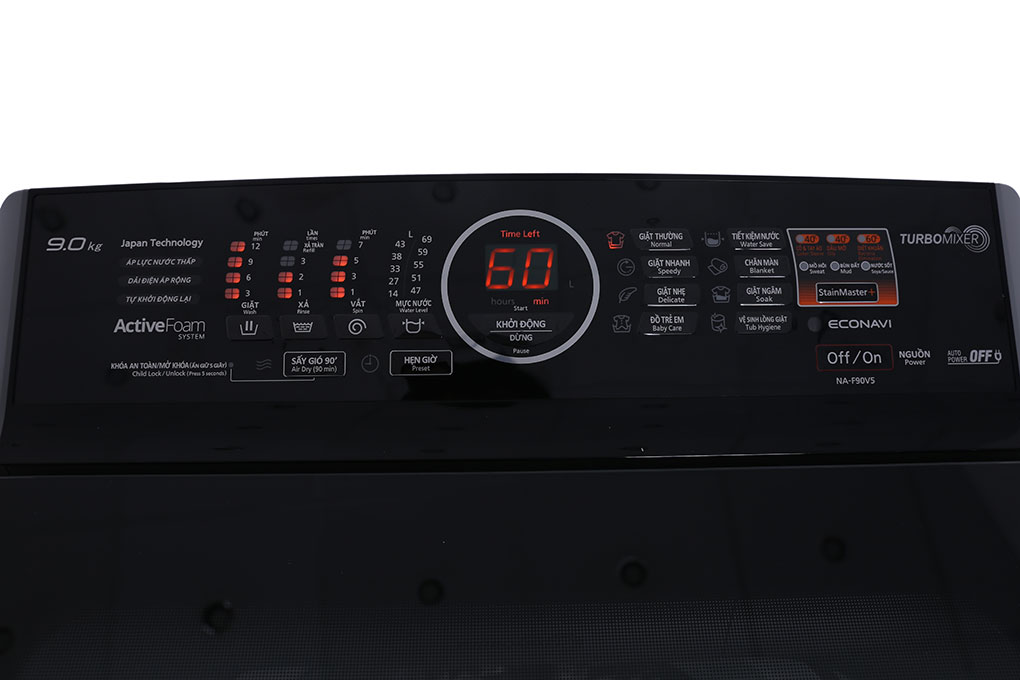 Máy giặt Panasonic NA-F90V5LMX còn được tích hợp công nghệ Active Foam thế hệ mới giúp tạo ra các bọt xà phòng đậm đặc, tăng cường hiệu quả giặt và không còn cặn bột giặt bám trên quần áo, hoạt động ngay cả ở nơi có áp lực nước thấp.