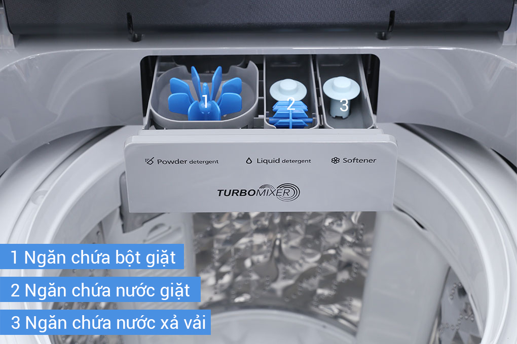 Kết hợp cùng hộp đựng bột giặt giúp đánh tan bột giặt tốt hơn, giờ đây bạn sẽ không còn phải lo lắng quần áo bị đóng cặn bột giặt nữa.
