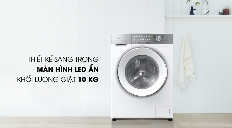 Máy giặt Panasonic Inverter 10 Kg NA-120VG6WV2 mang kiểu dáng cửa trước sang trọng, kết hợp với bảng điều khiển song ngữ Anh-Việt cùng màn hình hiển thị hiện đại, máy giặt không chỉ tô điểm thêm nét đẳng cấp cho không gian sống mà nó còn giúp bạn dễ dàng và thuận tiện trong việc điều chỉnh, sử dụng.