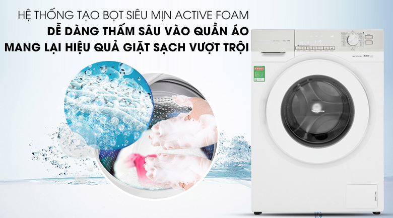 Hệ thống Active Foam đánh tan xà phòng thành dạng bọt mịn, thấm sâu vào sợi vải