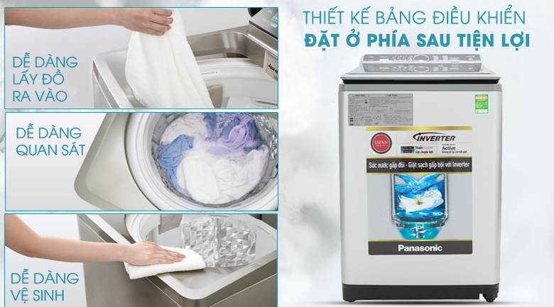Máy giặt Panasonic Inverter 11.5 Kg NA-FS11X7LRV với điểm nhấn là thiết kế bảng điều khiển đặt ở phía sau không chỉ mang lại vẻ đẹp hiện đại cho không gian nội thất mà nó còn giúp bạn thuận tiện và dễ dàng hơn trong việc thao tác, sử dụng máy giặt.