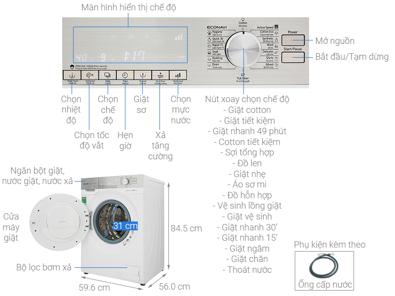 • Cảm biến Econavi kết hợp giặt cảm biến 3D giảm thiểu tối đa chi phí cho gia đình.