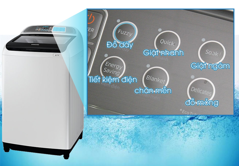 Với bảng điều khiển có hỗ trợ tiếng tiếng Việt, có màn hình hiển thị, máy giặt Samsung hướng tới sự thân thiện, tiện dụng cho người dùng. Sản phẩm này có khối lượng giặt là 9kg, phù hợp với các gia đình có từ 6 thành viên trở lên.