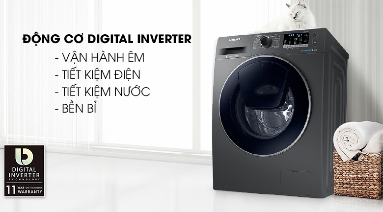 Là một sản phẩm đời mới, được ra mắt trong năm 2018, máy giặt Samsung WW85K54E0UX/SV còn mang đến khả năng vận hành rất êm ái, bền bỉ và giảm thiểu chi phí điện hằng tháng cho gia đình bạn nhờ vào công nghệ Digital Inverter hiện đại.