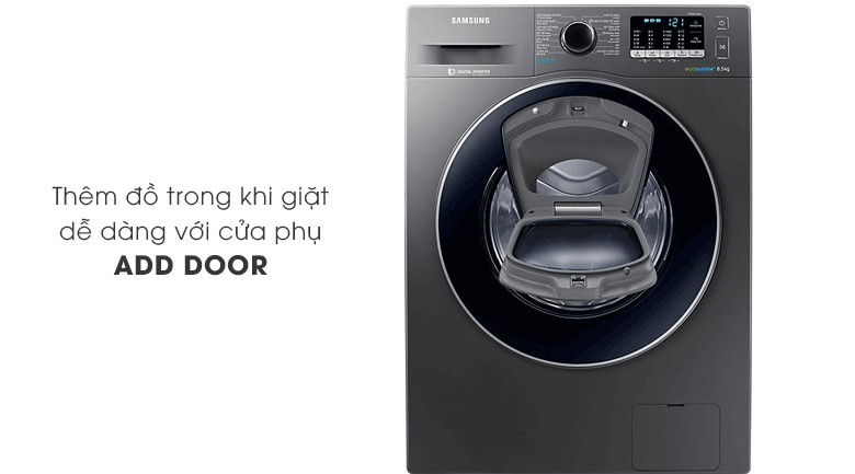 Đi cùng những đường nét thiết kế đặc biệt sang trọng và tiết kiệm điện, máy giặt Samsung AddWash còn có thiết kể một cửa phụ nhỏ Add Door làm điểm nhấn nổi bật cho sản phẩm. Ở cửa phụ này bạn có thể thêm vào những đồ giặt còn sót lại dù đang trong chu trình giặt, tiết kiệm thời gian cũng như công sức, bột giặt và nước hơn khá nhiều so với việc phải giặt thêm một lần nữa.