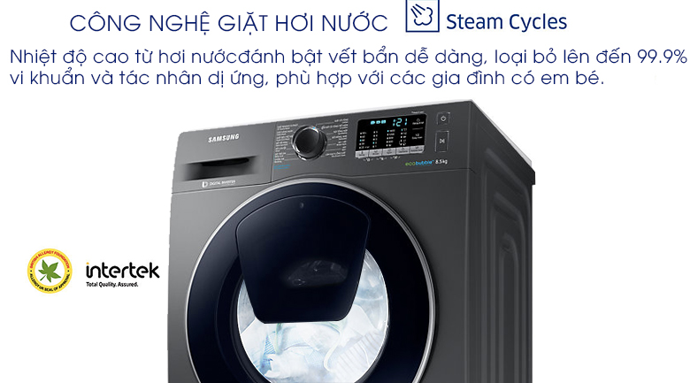 Đối với những gia đình có trẻ em, việc quần áo luôn được sạch khuẩn phải là ưu tiên hàng đầu. Giờ đây với công nghệ giặt hơi nước của máy giặt Inverter dòng Samsung WW85K54E0UX/SV, bạn có thể hoàn toàn yên tâm khi làn da của trẻ luôn được bảo vệ khỏi vi khuẩn, bụi bẩn và các tác nhân gây dị ứng có trong từng sợi vải.