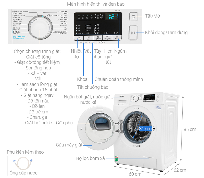 Không chỉ vậy, máy nén Inverter của máy giặt Samsung còn có thời gian bảo hành lên đến 11 năm, cho phép bạn yên tâm trong quá trình sử dụng.