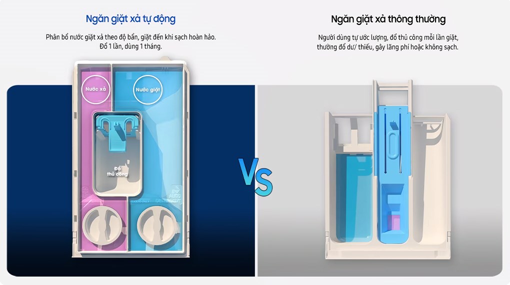 – Công nghệ AI Dispenser tự động điều chỉnh lượng nước giặt và nước xả phù hợp với khối lượng quần áo, đem lại hiệu quả giặt sạch tối ưu, giúp bảo vệ hiệu quả màu sắc, độ bền cho quần áo và tránh lãng phí.