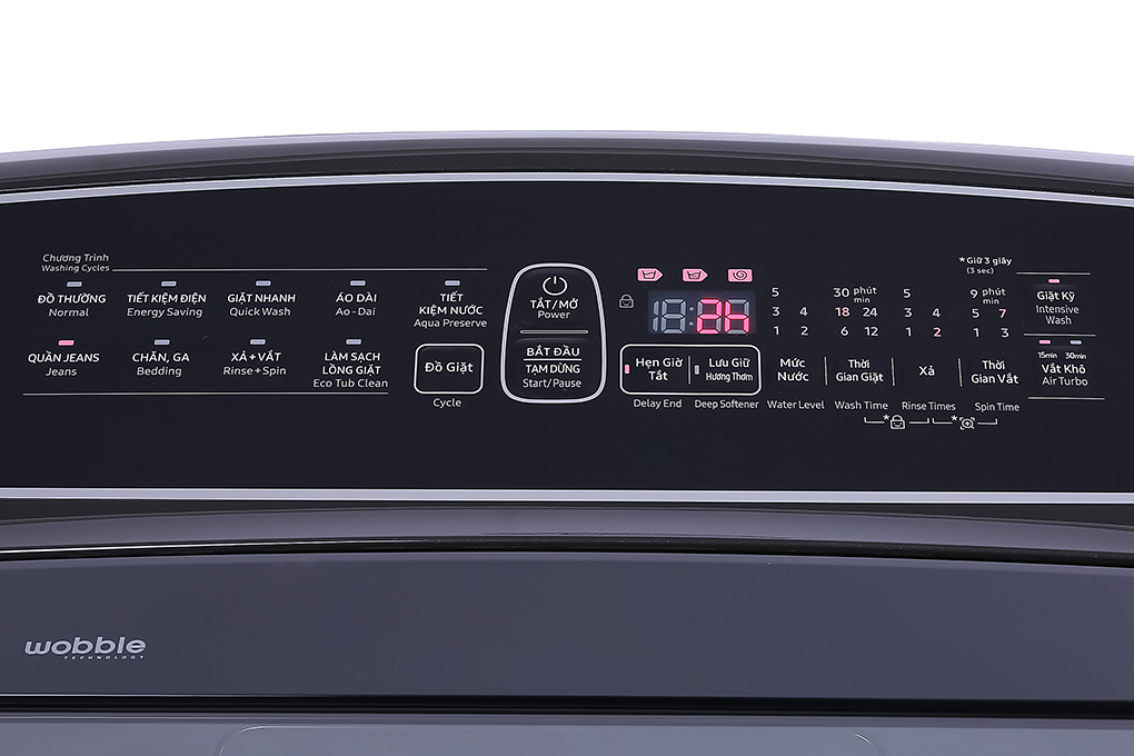 • Chương trình giặt: Giặt chăn ga, Giặt nhanh, Giặt thường, Giặt tiết kiệm, Giặt áo dài, Tiết kiệm nước, Vệ sinh lồng giặt, Xả + vắt, Đồ Jeans