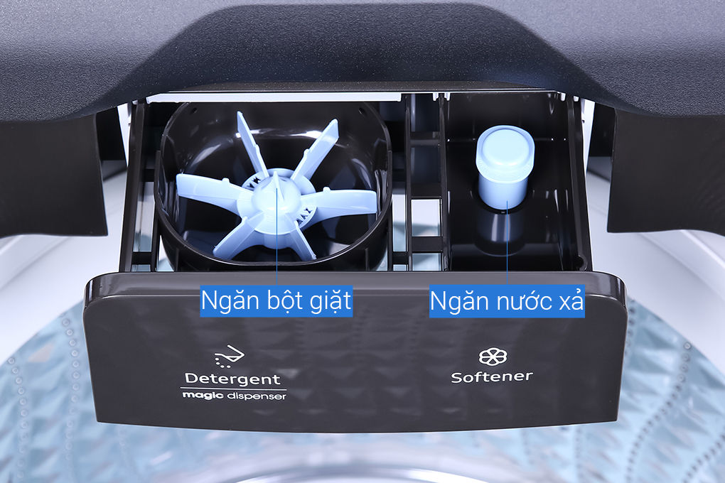 Hạn chế cặn bám, hòa tan nước giặt tẩy hiệu quả nhờ hộp Magic Dispenser