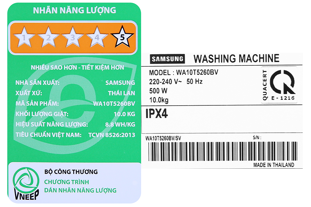 • Tiện ích: Chẩn đoán sự cố thông minh qua ứng dụng điện thoại Smart Check, Hẹn giờ giặt, Khóa trẻ em, Vệ sinh lồng giặt