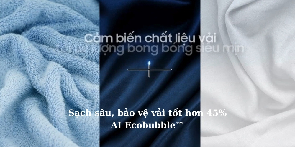 AI EcoBubble với bong bóng siêu mịn: Cảm biến thông minh giúp nhận diện chất liệu vải, từ đó tự động điều chỉnh lượng bong bóng siêu mịn, thời gian giặt, nhiệt độ và tốc độ vắt phù hợp. Nhờ đó, máy loại bỏ vết bẩn hiệu quả hơn đến 24% mà không cần dùng nước nóng, đồng thời tiết kiệm đến 70% điện năng và bảo vệ sợi vải vượt trội hơn 45%.