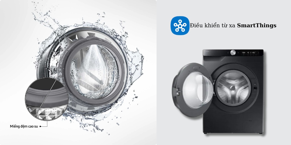 - Cho phép điều khiển từ xa qua ứng dụng SmartThings: Giúp bạn dễ dàng quản lý và điều khiển quá trình giặt giũ mỗi ngày, đồng thời tối ưu hóa lịch trình giặt và tiết kiệm điện năng một cách hiệu quả.