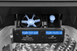 Ngăn bột giặt Magic Dispenser được thiết kế có cánh quạt xoay, tạo dòng nước xoáy mạnh để giúp hòa tan bột giặt nhanh chóng trước khi đổ xuống lồng giặt, tránh được tình trạng vết xà phòng còn đọng lại trên quần áo, gây ngứa ngáy hay khó chịu khi mặc.