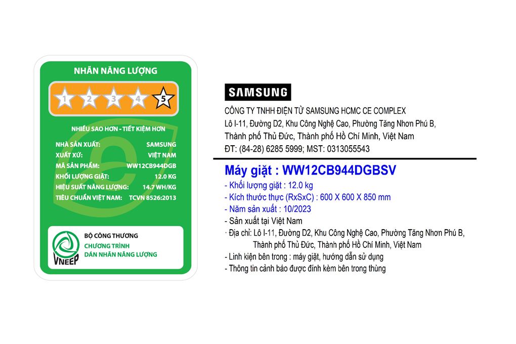 – Sản phẩm có hiệu suất sử dụng điện khoảng 14.7 Wh/kg và đạt nhãn hiệu năng lượng 5 sao.