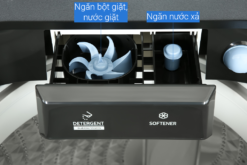 – Hộp đánh tan bột giặt Magic Dispenser: nằm trong ngăn chứa bột giặt, trang bị cánh quạt xoay khi máy vận hành sẽ tạo dòng nước xoáy mạnh để làm tan bột giặt triệt để trước khi đổ xuống dưới lồng giặt để nước giặt đi vào từng sợi vải, tránh tình trạng bột đóng cặn trên trang phục gây ngứa ngáy cho bạn.