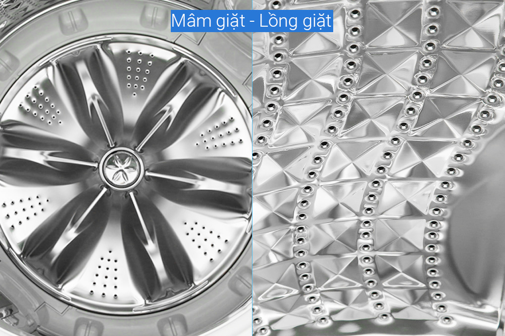 – Lồng giặt cũng được làm từ chất liệu thép không gỉ chống oxy hóa, có độ bóng cao, chế tác kiểu kim cương giúp đảm bảo quá trình giặt giũ hiệu quả.