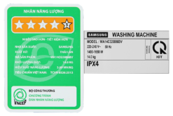 – Nhãn năng lượng: 5 sao. Hiệu suất sử dụng điện 5.1 Wh/kg.