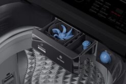 Với dung tích 15kg, máy giặt đáp ứng nhu cầu giặt giũ lớn, phù hợp cho gia đình đông người hoặc cần giặt các vật dụng lớn như chăn mền. Thiết kế cửa trên tiện lợi cùng màu sắc đen sang trọng, máy giặt không chỉ là thiết bị gia dụng mà còn là điểm nhấn thẩm mỹ cho không gian sống.