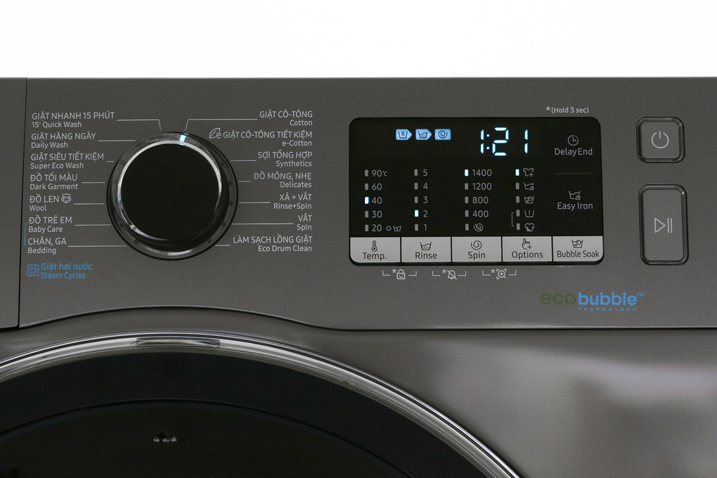 Với khối lượng giặt lên đến 21 kg, chiếc máy giặt Samsung này sẽ là sự lựa chọn lý tưởng cho gia đình đông thành viên hoặc có nhu cầu giặt giũ chăn mền lớn hay dùng cho bệnh viện, tiệm giặt ủi đều rất tốt.