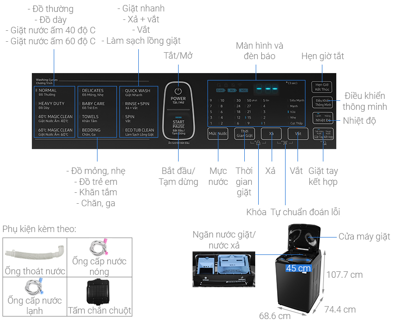 Diệt khuẩn đánh bật các vết bẩn cứng đầu với công nghệ giặt nước nóng tuỳ chỉnh Magic Clean