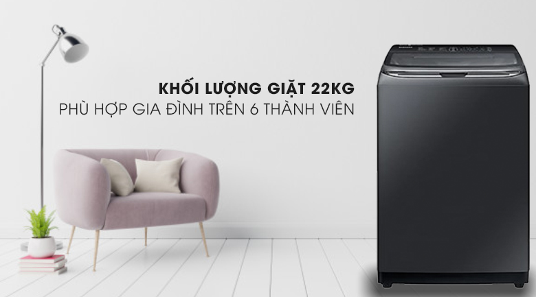 Khối lượng giặt khủng 22 kg cùng thiết kế hiện đại, đẹp mắt