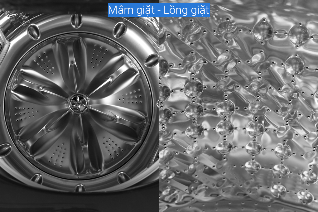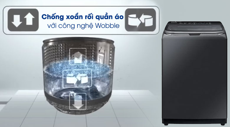 Công nghệ Wobble chăm sóc sợi vải một cách nhẹ nhàng mà vẫn không ảnh hưởng đến hiệu suất giặt quần áo. Nhờ mâm giặt có hai gờ và hai trục xoay tạo dòng nước mạnh mẽ chuyển động lên xuống và xoay ngang, giữ cho quần áo không bị xoắn và tăng cường sức mạnh giặt tẩy.