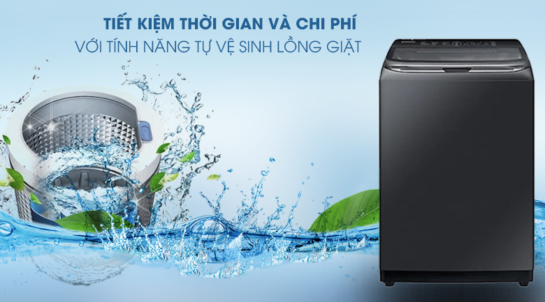 Loại bỏ cặn bột giặt, mảng bám bụi bẩn nhờ chế độ tự làm sạch lồng giặt