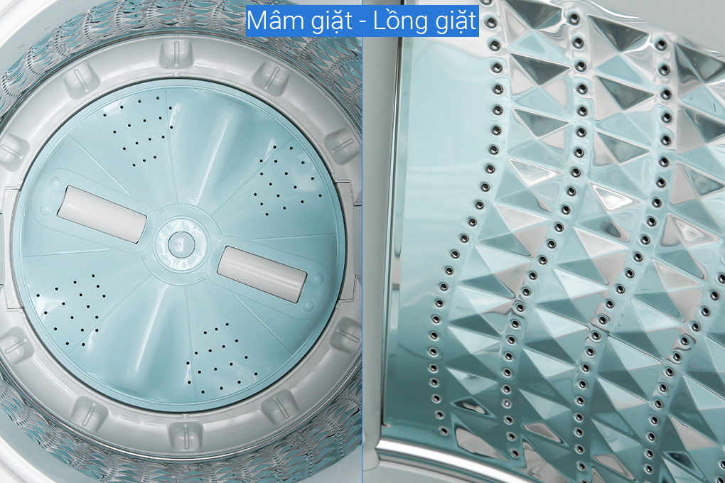 Mâm giặt Wobble có thêm 2 thanh bi lăn sẽ tạo ra luồng nước đa chiều từ trái qua phải, từ trên xuống dưới giúp đánh bật vết bẩn hiệu quả mà vẫn không làm xoắn rối quần áo, đồng thời giảm ma sát quần áo, bảo vệ quần áo tốt hơn và giảm nhăn nhúm sau khi giặt.