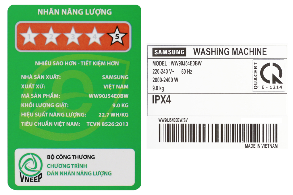 Với gam màu trắng tinh tế cùng thiết kế cửa trước, lồng giặt nằm ngang, máy giặt Samsung Inverter 9 kg WW90J54E0BW/SV mang lại cảm giác thân thuộc cho người dùng và là một điểm nhấn cho không gian nhà bạn. Máy có khối lượng giặt 9kg thích hợp cho những gia đình từ 6 – 8 người.