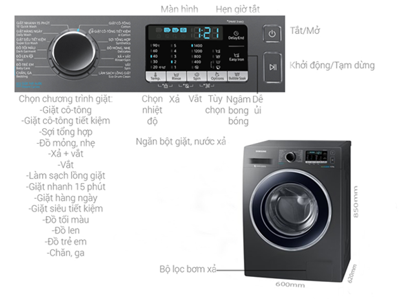 Với chất liệu inox màu Xám và Trắng sang trọng , cùng thiết kế cửa pha lê trong suốt trang nhã, máy giặt Samsung Addwash tạo điểm nhấn tinh tế cho không gian giặt giũ trong nhà bạn.