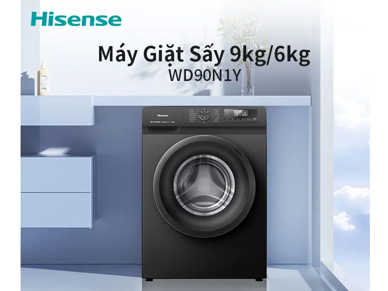 Với nhãn năng lượng 5 sao, máy giặt Hisense WD90N1Y không chỉ tiết kiệm điện mà còn bảo vệ môi trường.