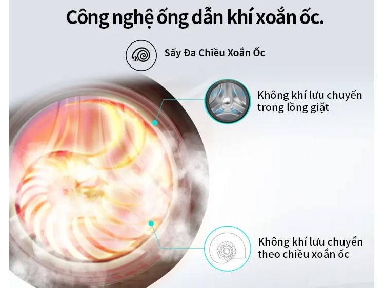 Máy giặt sấy Hisense WD90N1Y trang bị công nghệ sấy ngưng tụ hiện đại giúp sấy khô nhanh chóng và bảo vệ quần áo tốt hơn. Hệ thống sấy đa chiều xoắn ốc kết hợp với ống dẫn khí xoắn ốc mạnh mẽ tạo ra lưu lượng gió lên đến 150 m3/h, cao hơn 15% so với các sản phẩm trong cùng tầm giá. Thiết kế này giúp quần áo của bạn khô nhanh chóng và tiết kiệm thời gian.