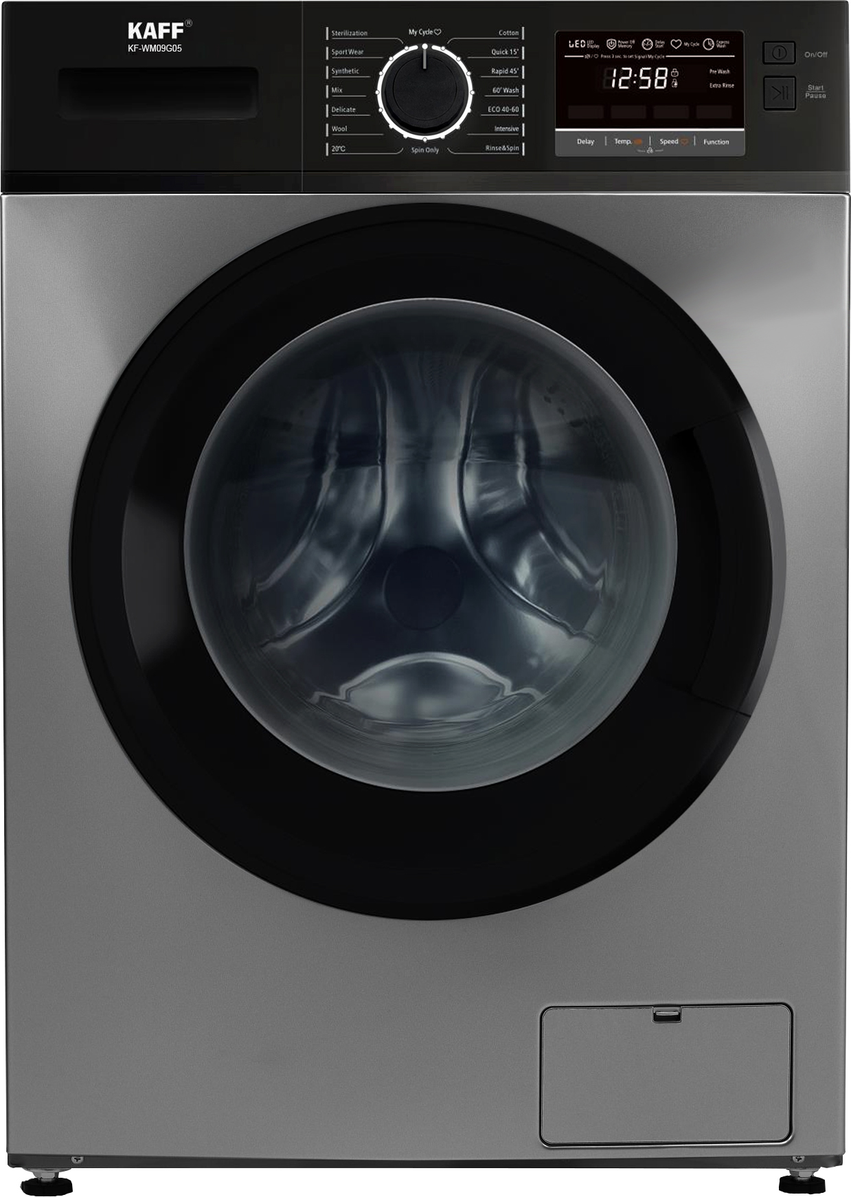 Máy giặt độc lập Kaff KF-WM09G05 có 16 chương trình giặt sấy linh hoạt cho tùy từng chất liệu vải, màu sắc khác nhau; tùy vào độ sạch bẩn quần áo… Các xương (gân) trong lồng giặt có cấu trúc hình sóng 3D cùng cửa giặt có mặt nghiêng dốc xuống sẽ di chuyển quần áo theo hình xoắn ốc. Quần áo được phân bố đều trong lồng giặt, giúp làm sạch tối ưu và máy hoạt động êm ái, ổn định hơn. Tốc độ quay vắt lớn đạt tối đa 1400 vòng/phút là một yếu tố giúp quần áo được giặt sạch hơn.