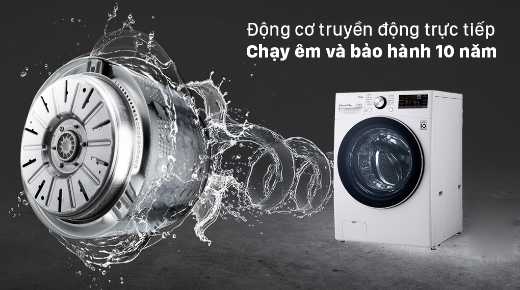 Hơn nữa, động cơ vận hành êm ái và bền bỉ này còn được bảo hành đến 10 năm giúp bạn an tâm hơn khi chọn dùng máy giặt LG.