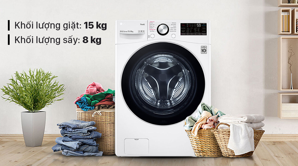 Máy giặt sấy LG Inverter F2515RTGW đáp ứng nhu cầu giặt đến 15 kg và sấy đến 8 kg quần áo, phù hợp cho những gia đình đông thành viên với hơn 7 người mà không phải tốn nhiều nước, điện năng và thời gian để chia quần áo thành nhiều mẻ giặt.