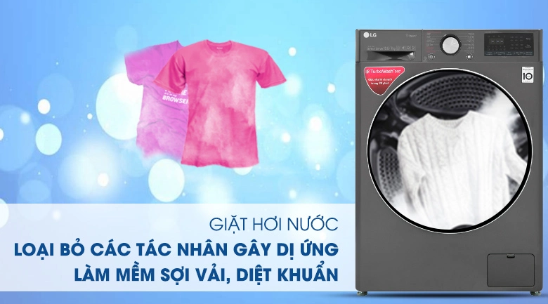 Sử dụng hơi nước nóng ở nhiệt độ cao trong quá trình giặt giũ, máy giặt sẽ góp phần loại bỏ đến 99,9% vi khuẩn, bụi bẩn và tác nhân gây dị ứng trên quần áo, đồng thời hơi nước nóng còn giúp sợi vải được nở ra, nhờ vậy quần áo được làm mềm hơn, chống nhăn tốt hơn, cho bạn không còn tốn nhiều thời gian là ủi sau mỗi mẻ giặt.