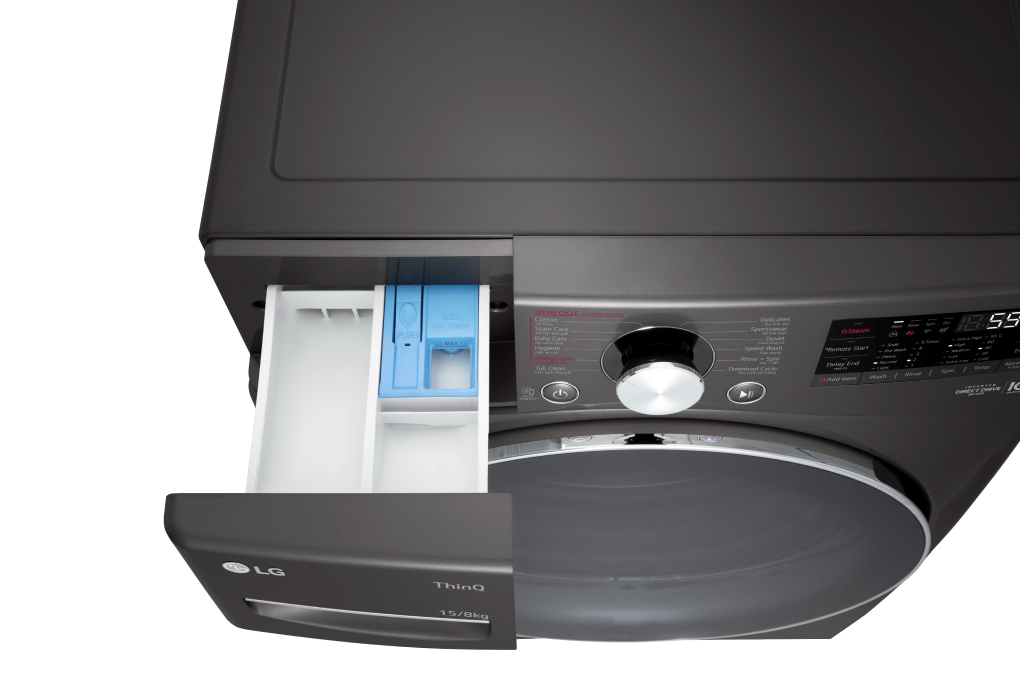 – Khối lượng giặt 15 kg và khối lượng sấy 8 kg, đáp ứng nhu cầu giặt cho gia đình trên 7 thành viên hoặc gia đình ít thành viên hơn nhưng nhu cầu giặt giũ hàng ngày cao, không có nhiều thời gian phơi khô quần áo.
