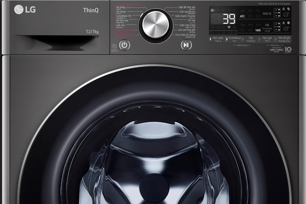 – Máy giặt LG Inverter có khối lượng giặt 12 kg và sấy được 7kg quần áo, phù hợp cho gia đình đông thành viên, trên 7 người sử dụng.