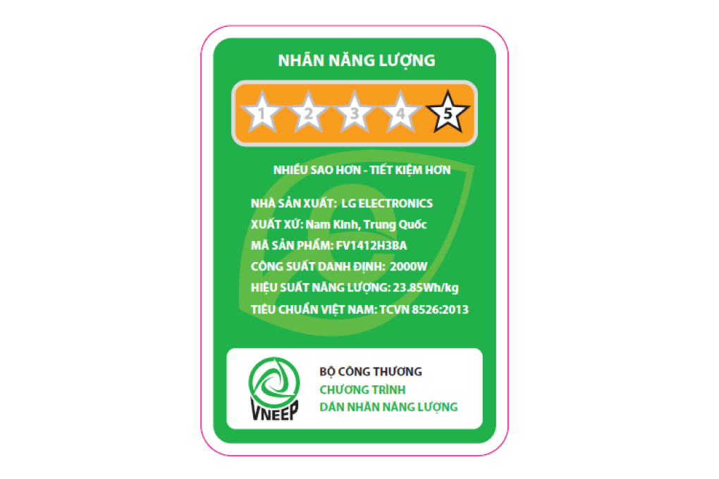 – Sản phẩm có hiệu suất sử dụng điện 25.48Wh/kg, đạt 5 sao về nhãn năng lượng.