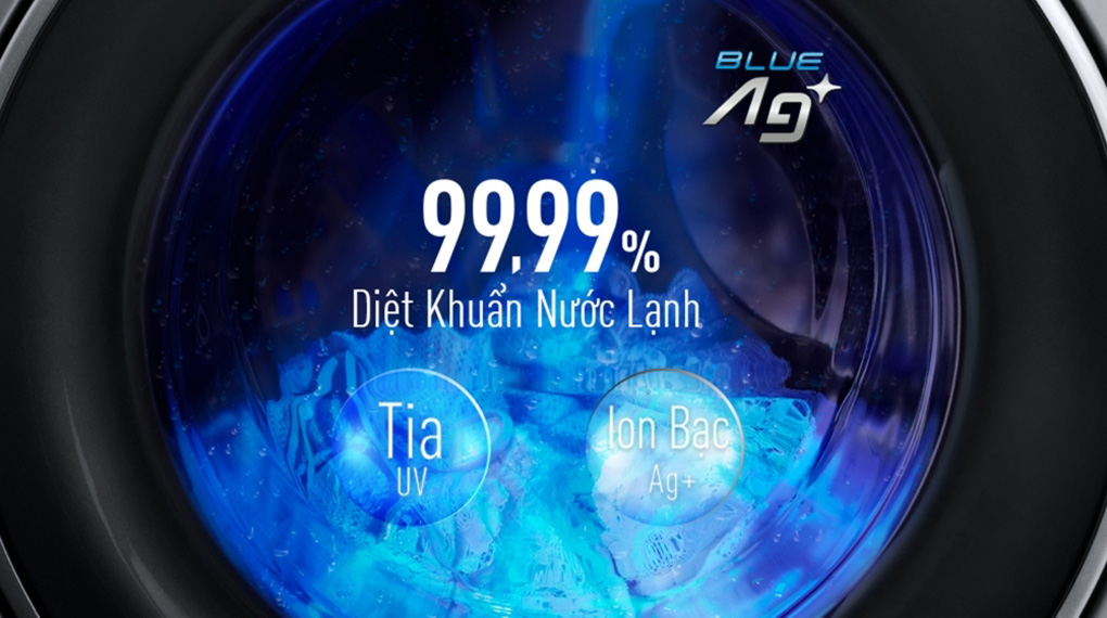 – Công nghệ giặt nước lạnh Blue Ag+: Có khả năng giải phóng các ion Bạc (Ag+) vào nước giặt, rồi chiếu tia UV vào các ion Bạc đó để tạo ra nguồn năng lượng lớn nhằm ức chế sự hoạt động của vi khuẩn, nhờ đó mang lại hiệu quả diệt khuẩn đến 99.99% và an toàn cho da người mặc.